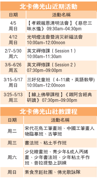 人间福报:*星云大师灵骨 12道场迎奉法灯远传 *【星云说喻】鸭子一条腿 *灯笼猜谜迎春意 亲子联欢暖人心 *北卡佛光山近期活动及社教课程